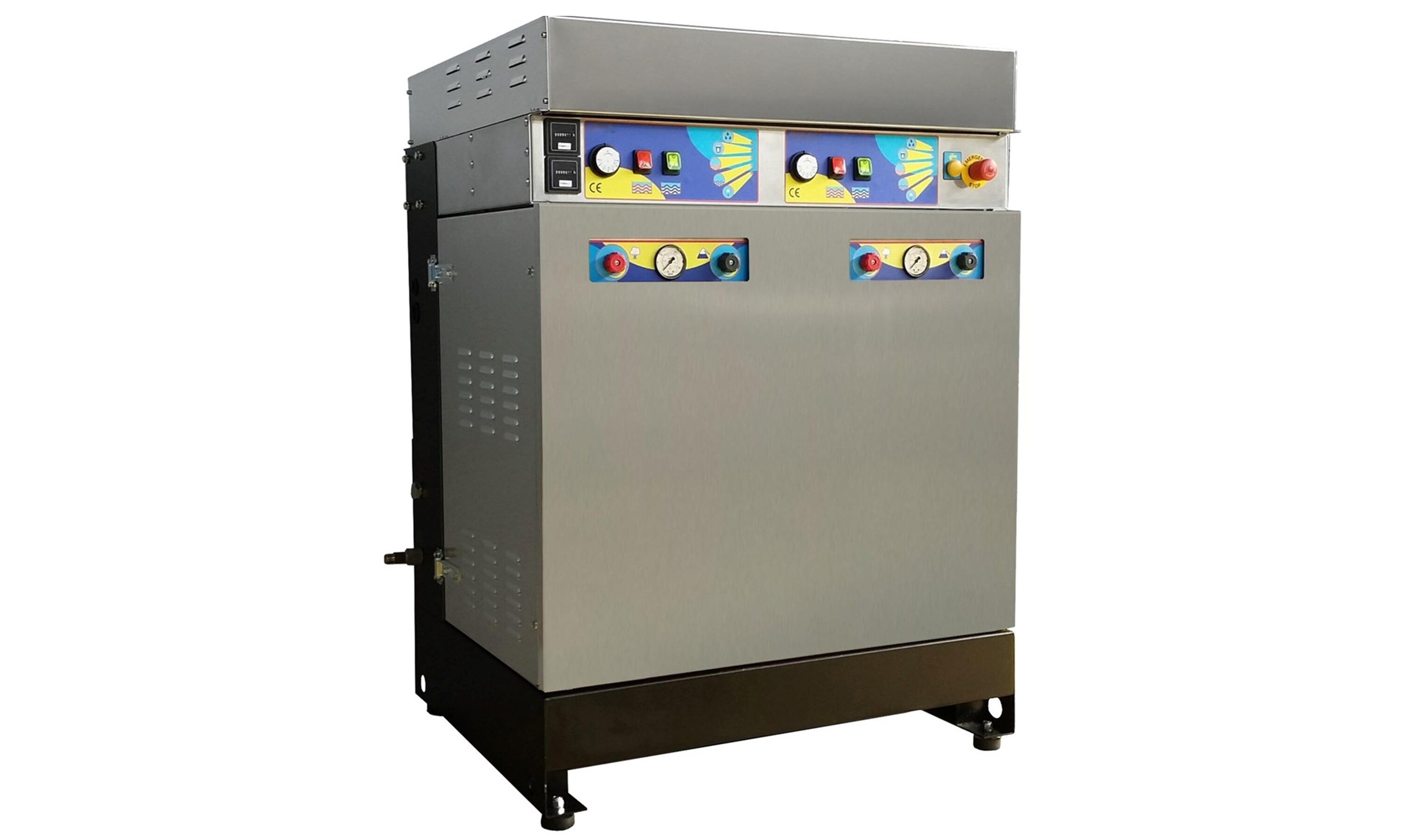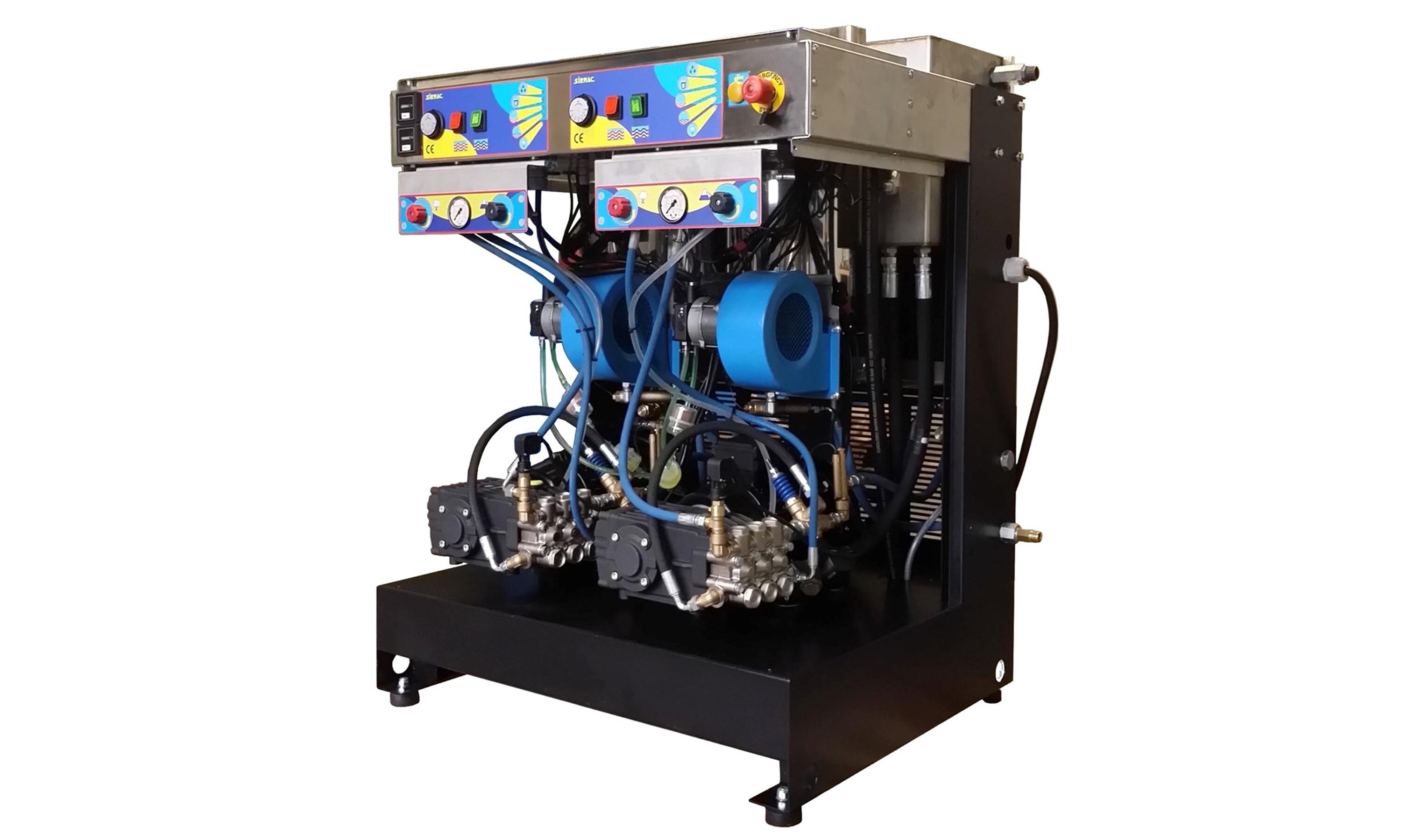 Med to industrielle stempelpumper og to separate varmemoduler kan anlegget brukes av opptil to operatører samtidig, uten tap av ytelse. Dette gjør det ideelt for vask av kjøretøy, tungt utstyr og industriell rengjøring.