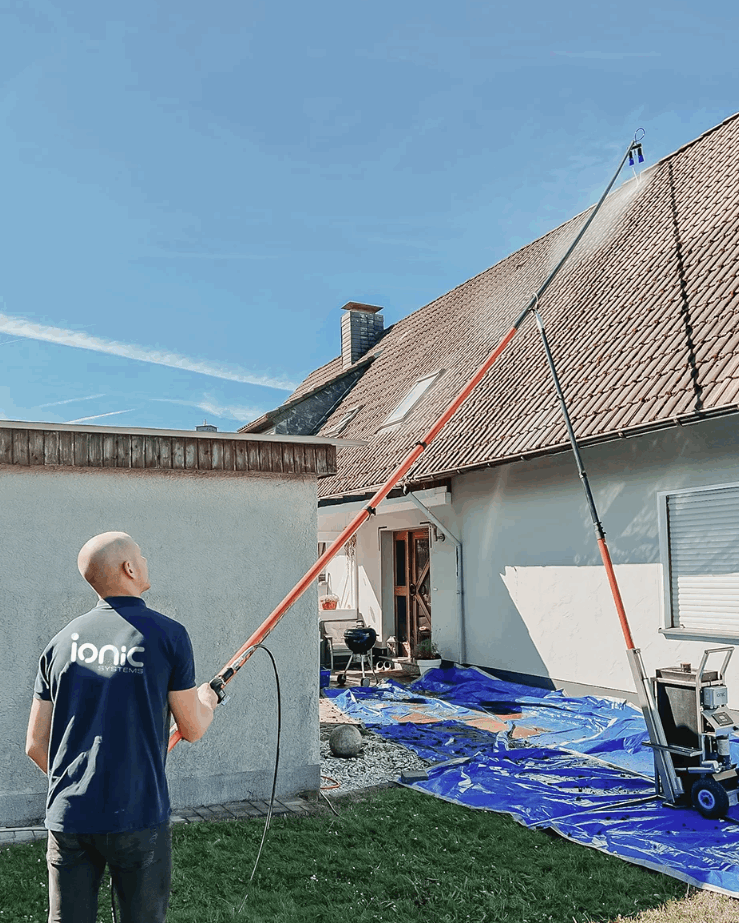 Alle disse utfordringene slipper du med Ionic Takrenslanse, her får du et komplett system med teleskop-takrenslanse og teleskopmastpumpe som gir deg en arbeidslengde eller høyde på opptil hele 19 m!