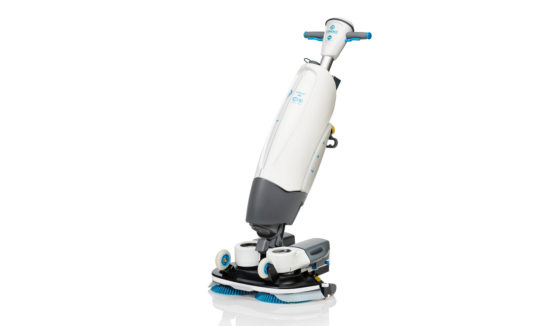 - i-mop XL Pro har oppgradert elektronikk og flere driftsmoduser, blant annet I-balance og I-link. og er utviklet for profesjonelle brukere med høyere krav til kontroll og fleksibilitet.