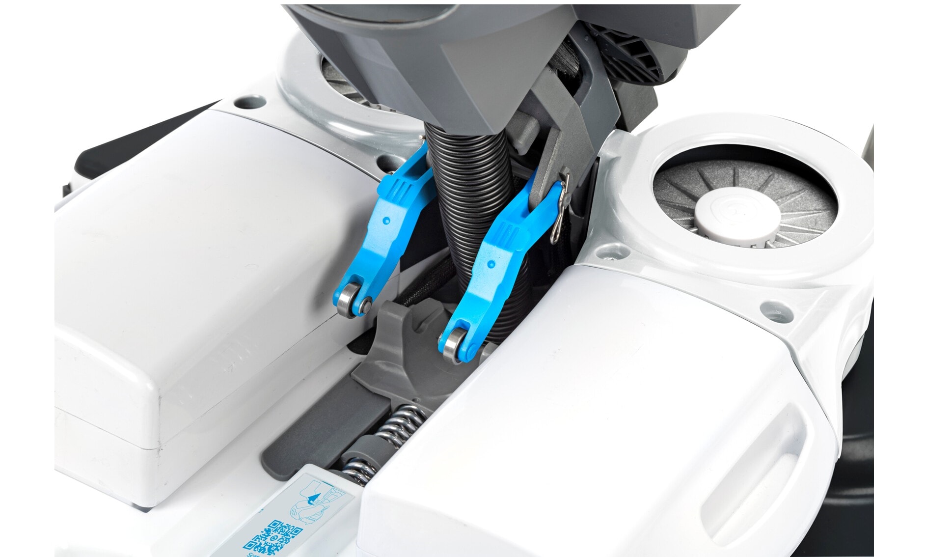 i-mop er utstyrt med to høyhastighets, kontraroterende børster med en rengjøringsbredde på 46 cm (18") – tilsvarende en gå-bak-maskin, men med langt bedre smidighet.