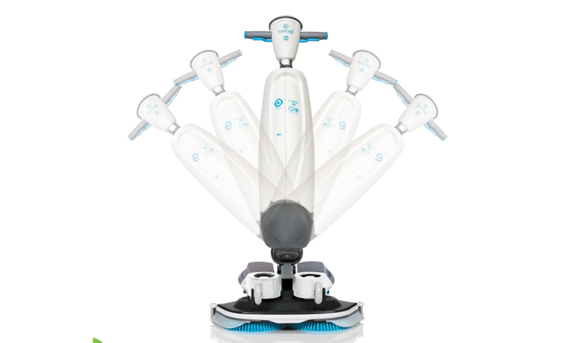 i-mop kombinerer kraften fra en tradisjonell gulvvaskemaskin med fleksibiliteten til en mopp. Resultatet er raskere rengjøring, bedre kontroll og høyere produktivitet – også i trange og møblerte områder.