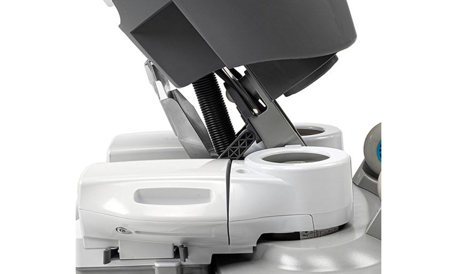 i-mop er utstyrt med to høyhastighets, kontraroterende børster med en rengjøringsbredde på 46 cm (18") – tilsvarende en gå-bak-maskin, men med langt bedre smidighet.