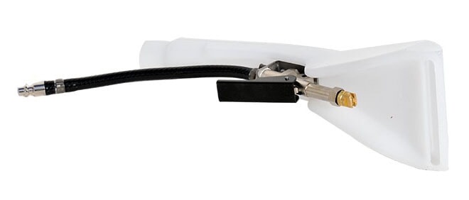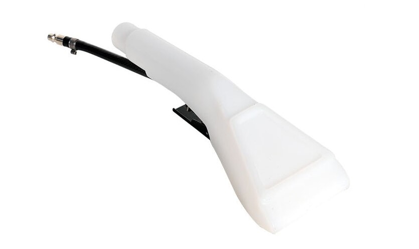 Med spraydyse for jevn utlegging av tepperensmiddel.