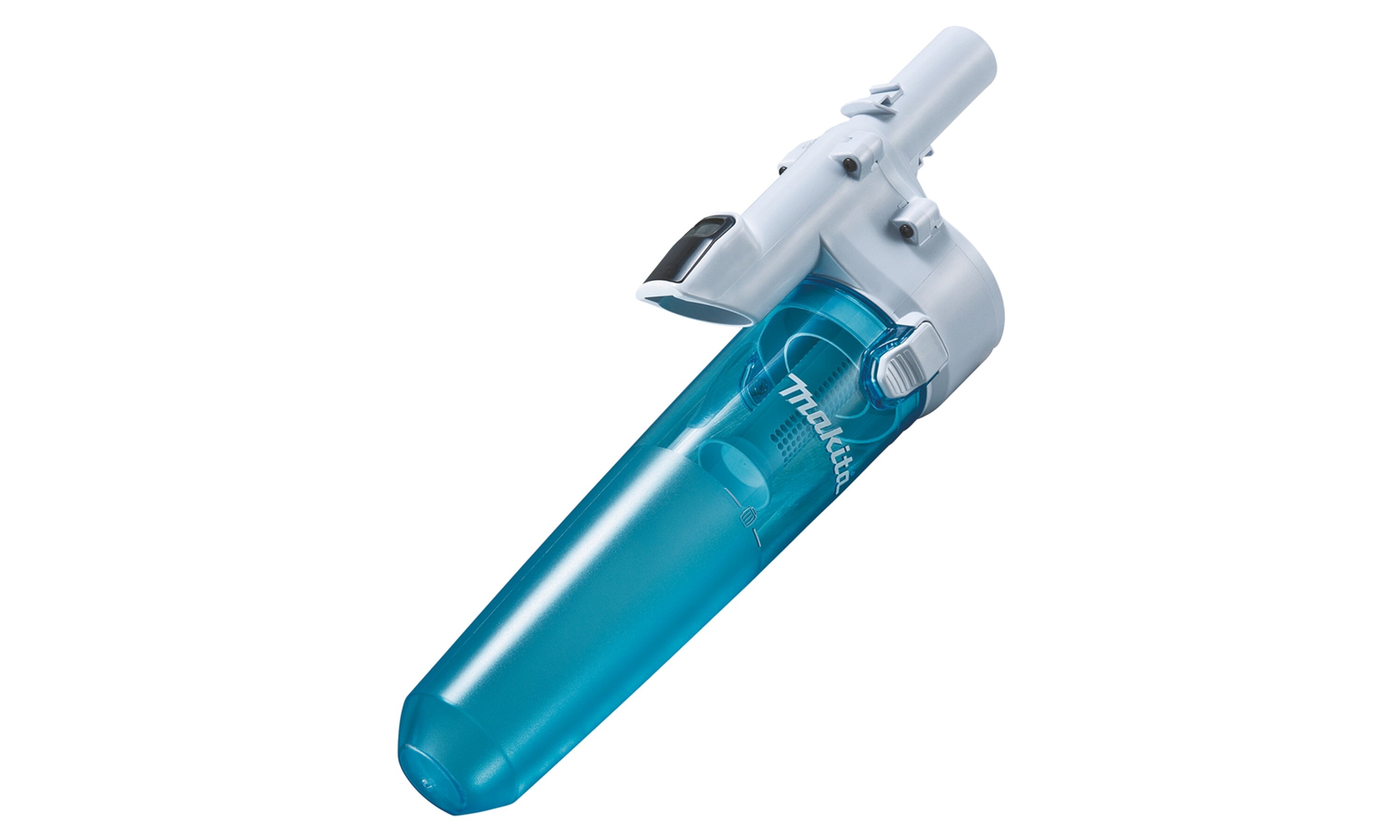 Syklon støvsugerbeholder, sort med festelås som settes på Makita batteristøvsuger for å øke effekten.