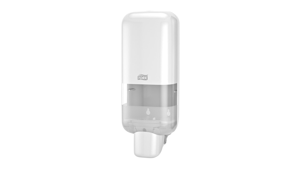 Tork dispenser til håndhygiene kan brukes med et stort utvalg av Tork hudpleieprodukter i forseglede flasker.