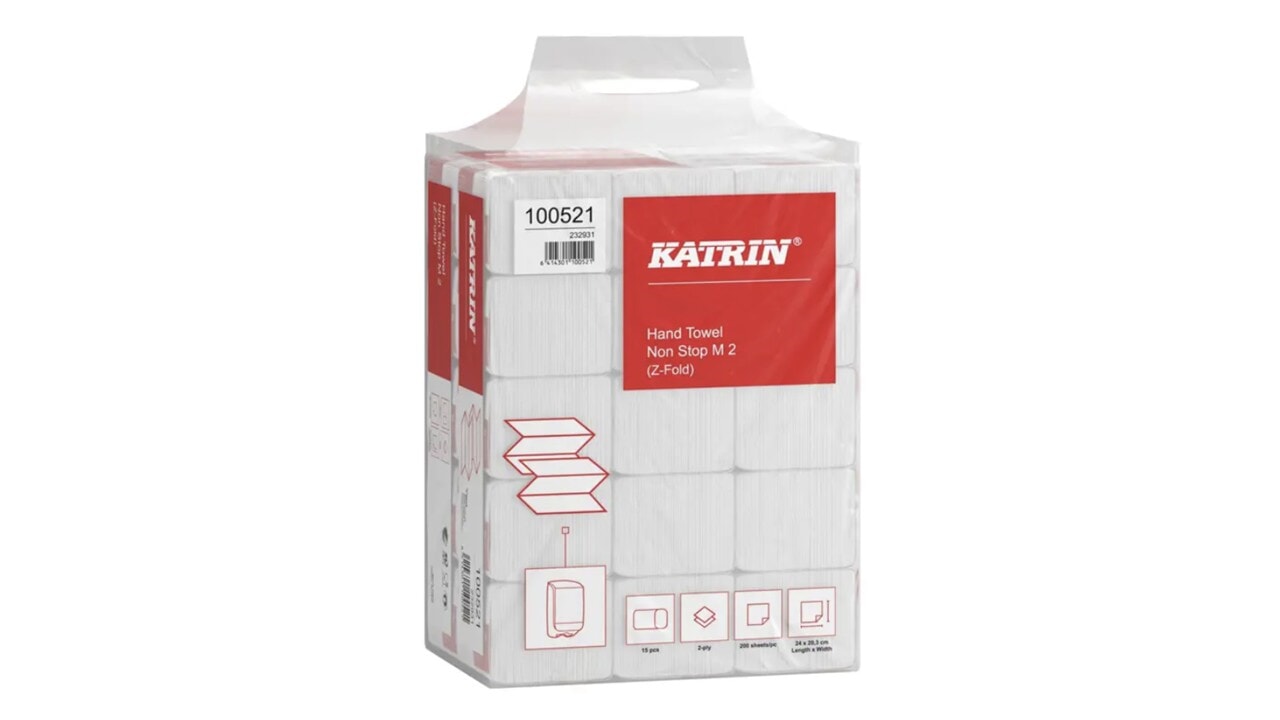 Falsede, Z-folded håndtørkeark laget av en blanding av gjenvunnet papir og nyfiber.