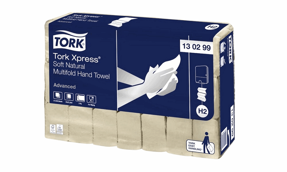 Håndtørkene er skånsomme mot hendene, av høy kvalitet og passer i Tork Xpress Multifold Håndtørk Dispenser for toalettrom med middels pågang.