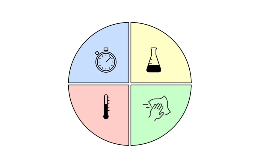 Han kom kort forklart frem til at det er 4 viktige parametere som er tilstede når man rengjør:
