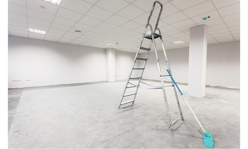 Her vil det oftest også for det meste være tørt byggstøv som best fjernes med tørre, rene mopper.