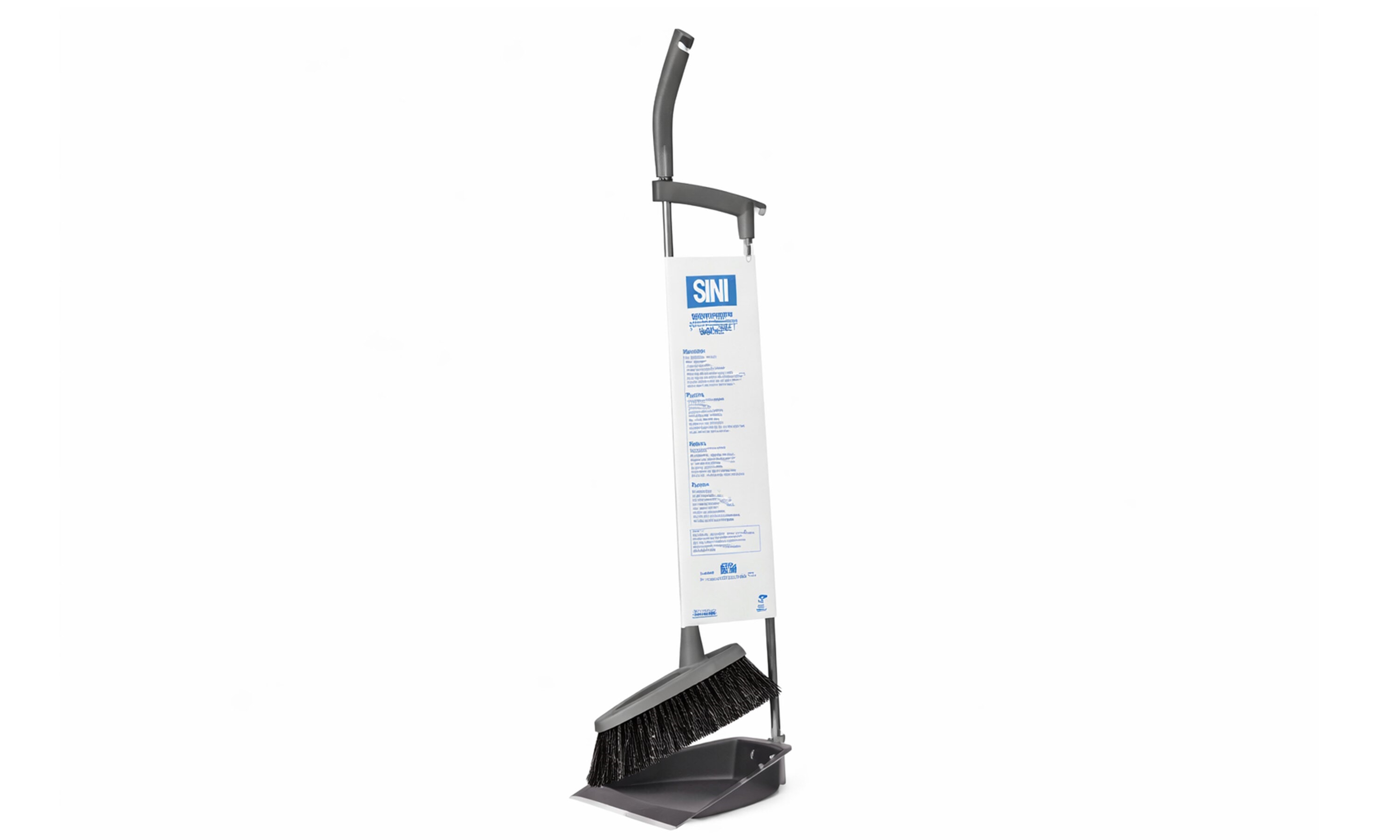 Kosten har metallskaft og brettet er i holdbar hardplast med gummileppe som gjør det enkelt å fjerne alt av støv og rusk.