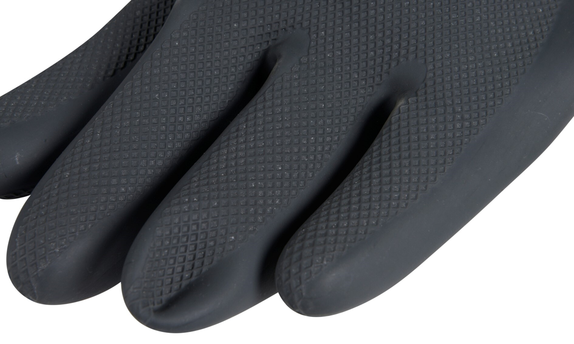 Med en tykkelse på 0,8 mm gir hansken høy slitestyrke og god mekanisk beskyttelse. Diamantmønster i håndflaten sørger for et sikkert og stabilt grep, selv i våte omgivelser. Den rullede mansjetten gir økt stabilitet og gjør hansken enkel å ta raskt av og på.
