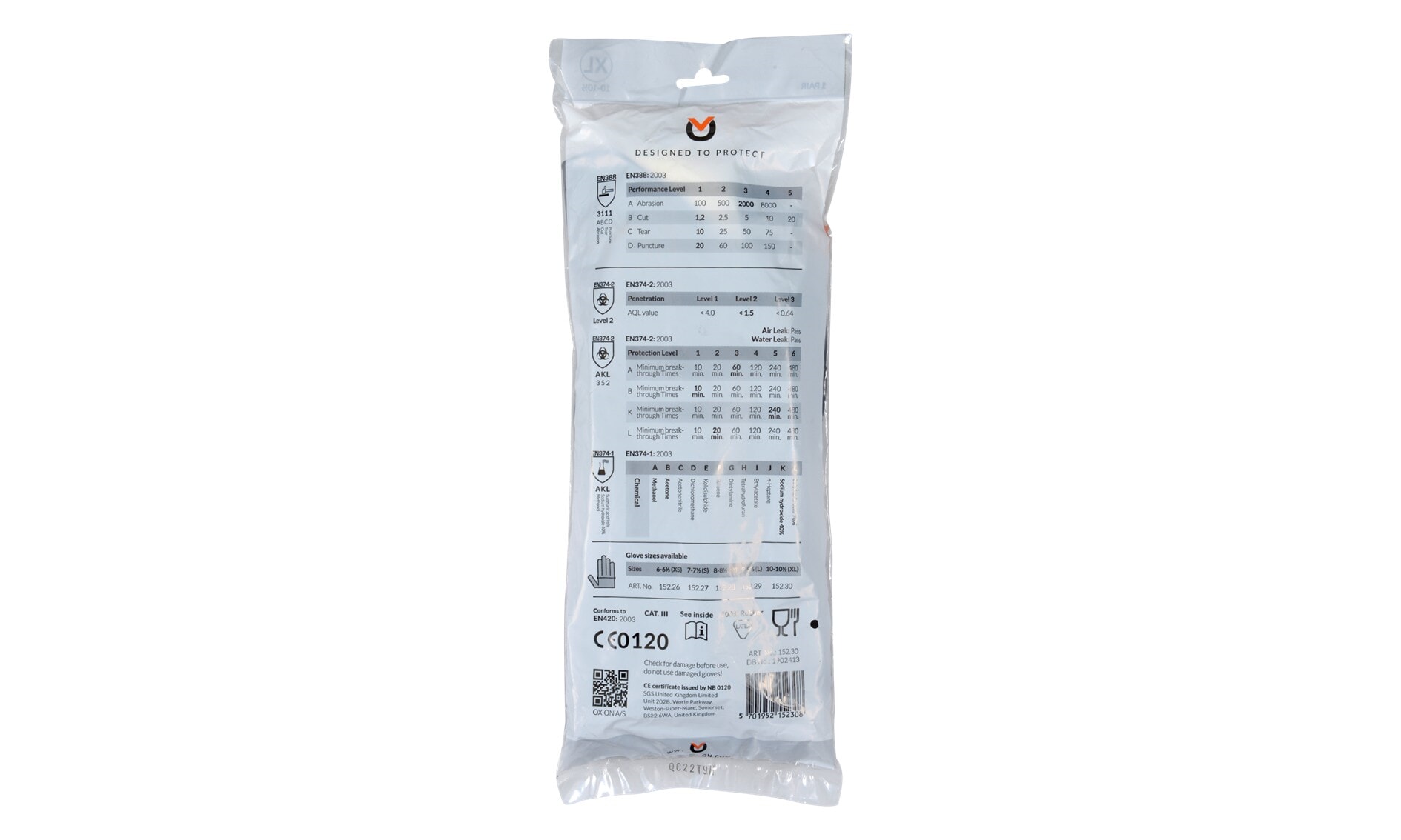 - EN ISO 374-1 Type A (AKLMN) – Kjemikaliebeskyttelse