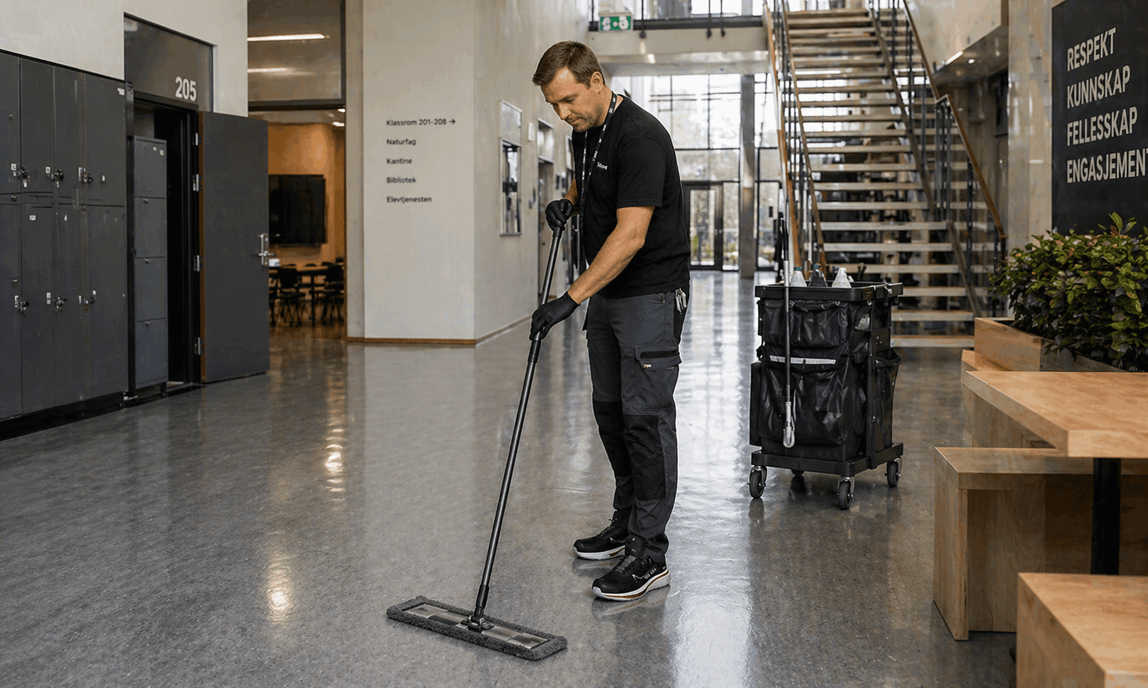 Lett og pustende vernesko utviklet for lange arbeidsdager innen renhold, drift og lett industri.