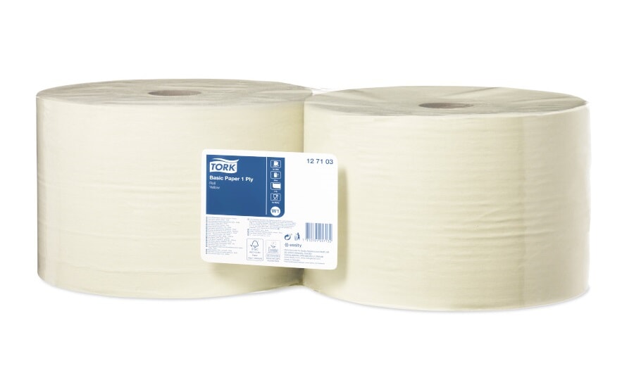 Tork Basic Papir 1-lags er ideelt for grunnleggende tørkeoppgaver, håndtørking og når kostnadseffektivitet er viktig.