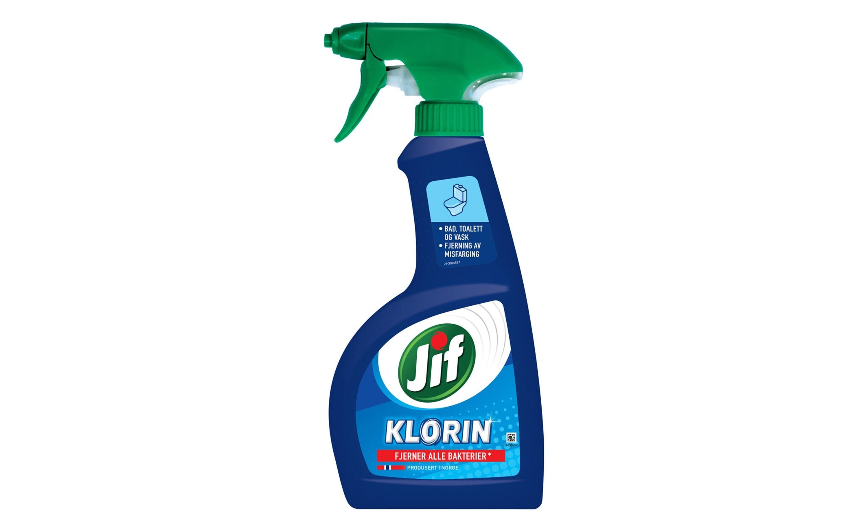 Bruk Klorin rengjøringsspray med klor for hygienisk rengjøring på bad, kjøkken og andre bakterieutsatte steder.