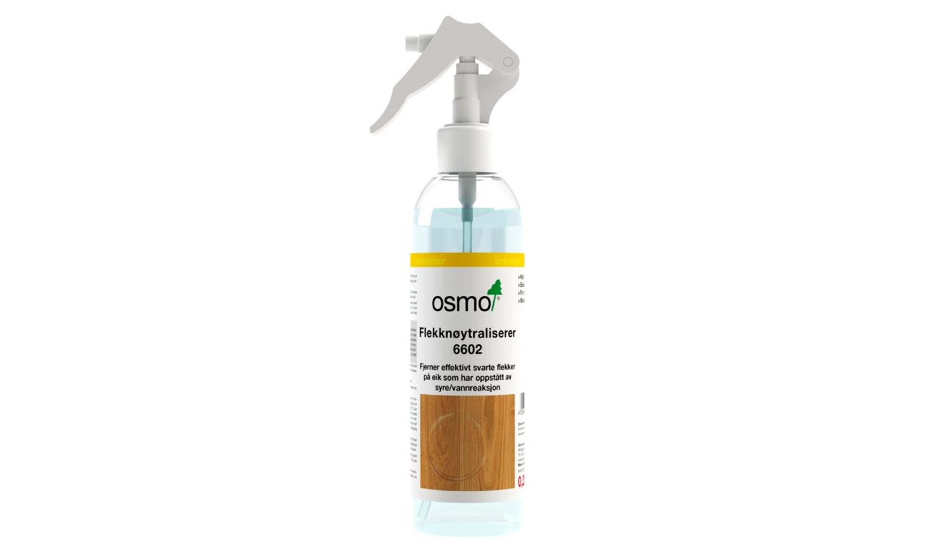 Osmo Flekknøytraliserer er en effektiv flekkfjerner for å bli kvitt mørke vann- og metallflekker på overflater av eik og andre edeltre typer som bøk, valnøtt, mahogni, teak osv.